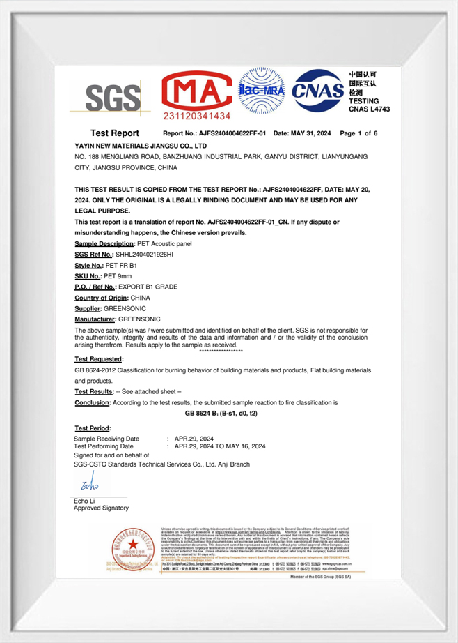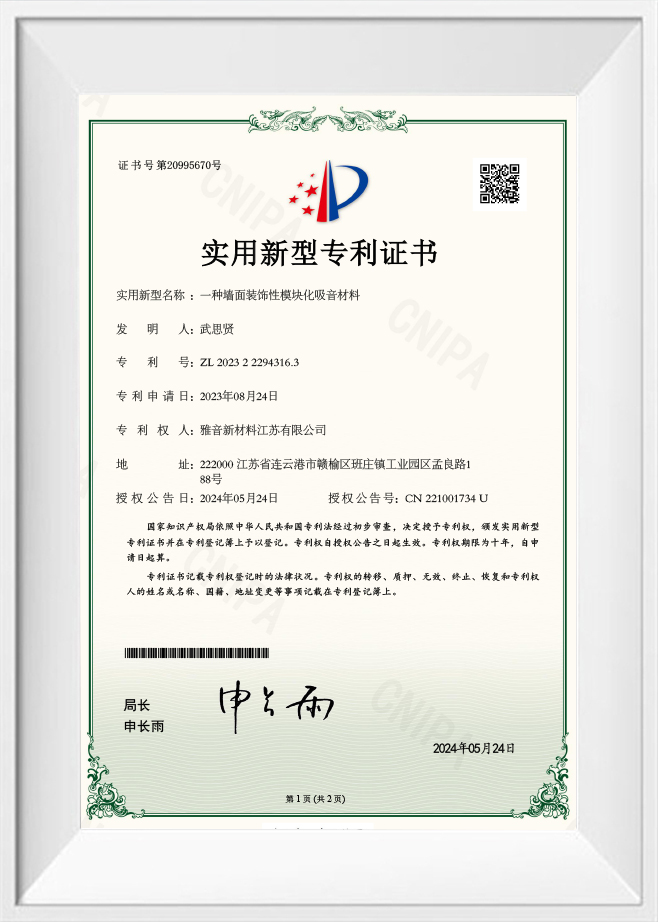 Patentcertifikat for et modulært lydabsorberende materiale til vægdekoration